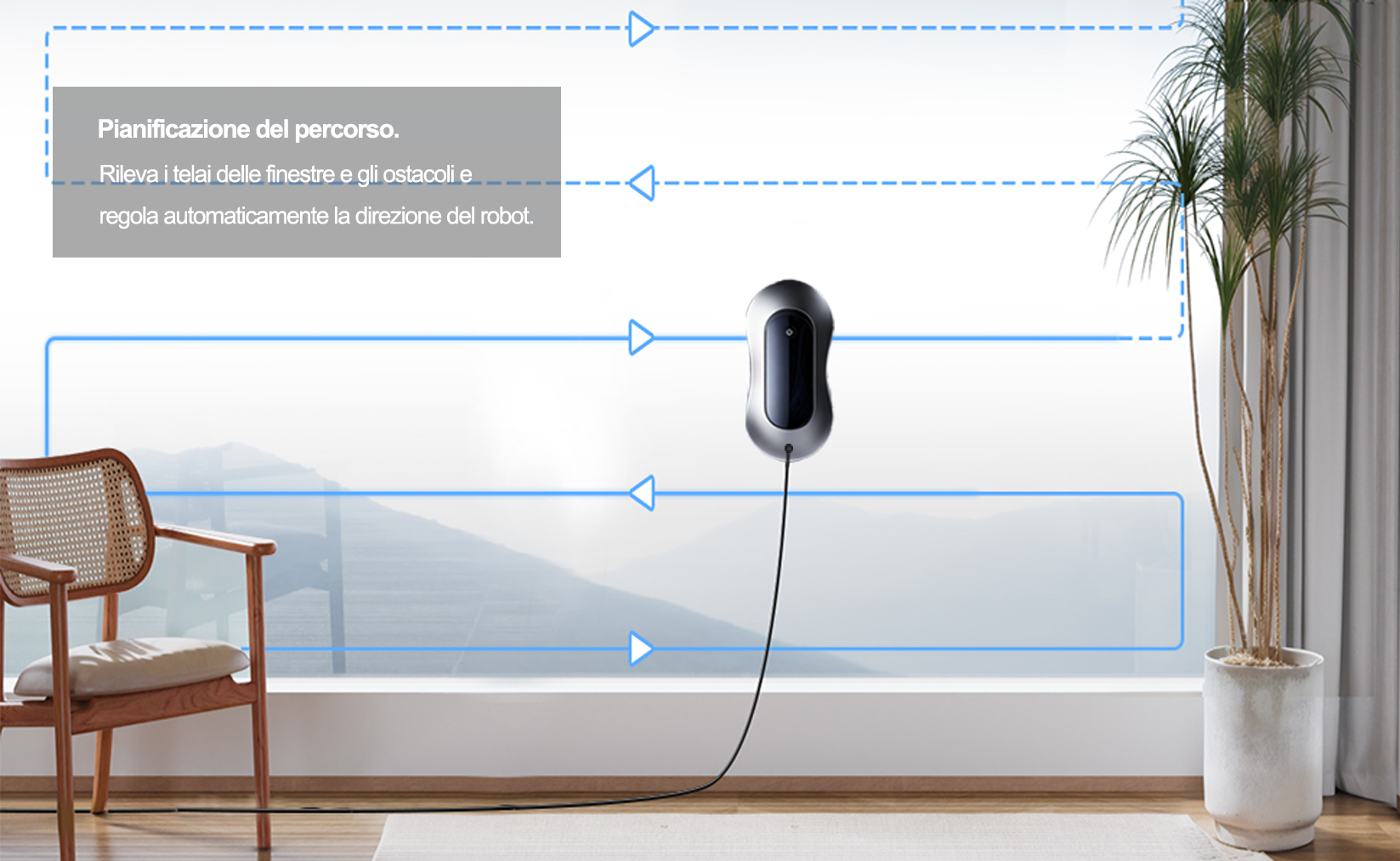 È dotato di algoritmi intelligenti che pianificano automaticamente i percorsi di pulizia, garantendo che ogni parte della finestra venga igienizzata.